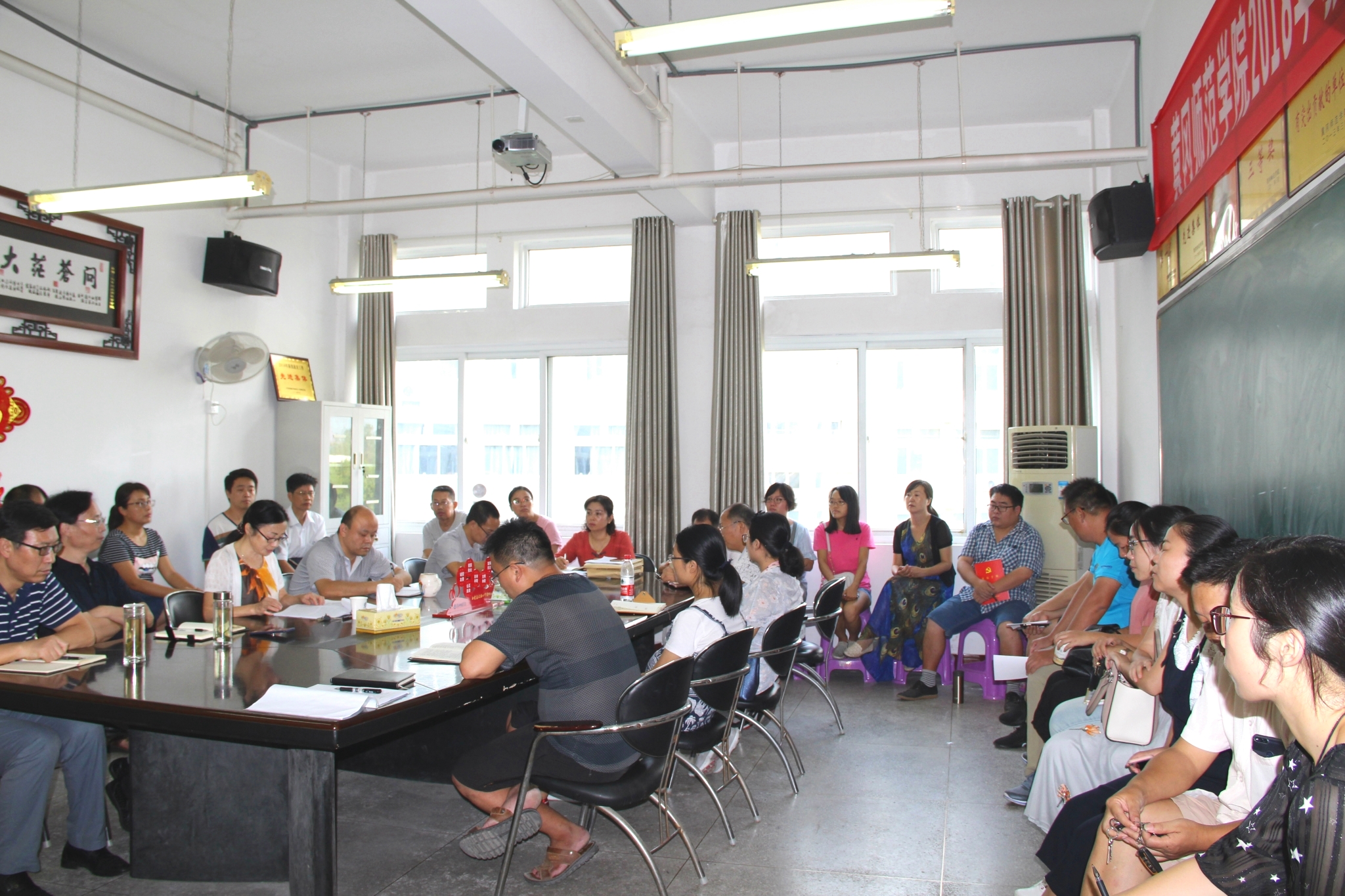 学院党总支书记施向荣传达了学校中层干部在红安干部学院学习培训情况,学习了校党委书记王立兵同志的讲话精神,并作了《坚持党建引领,明确“以本为本”、推进“四个回归”》的专题报告。施书记从高校教育“以本为本、四个回归”的内涵、 高校教育“四个回归”的时代意义、 立足学院实际,坚持党建引领,明确“以本为本”,推进“四个回归”等三个方面进行了精彩的阐述,尤其是报告客观分析了我院的现状,充分肯定了过去取得的可喜成绩,也实事求是地分析了我院的短板和不足:科研实力还有待进一步加强,青年教师培养还有极大的提升空间,教风学风还有待进一步提升。